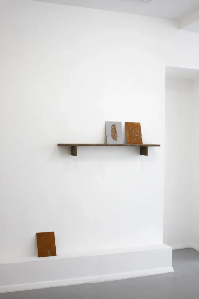 ‘For once I found myself not delving into the history of a place, but into the materiality, which allowed the history to evolve. Into the rock. Into the water. And into the vestiges of rusted iron dotted throughout the landscape. I wander along tracks in the hills that emerged to serve the past. My own presence emerges from the land as a result, dragging metal behind me as I go. Metal clashing with rock in the valley once again. The old metal has been deliberately forgotten deep in the earth to be hidden. But I see rusty coloured water seeping from the stone to form a puddle, betraying its presence.’ Cliff Andrade